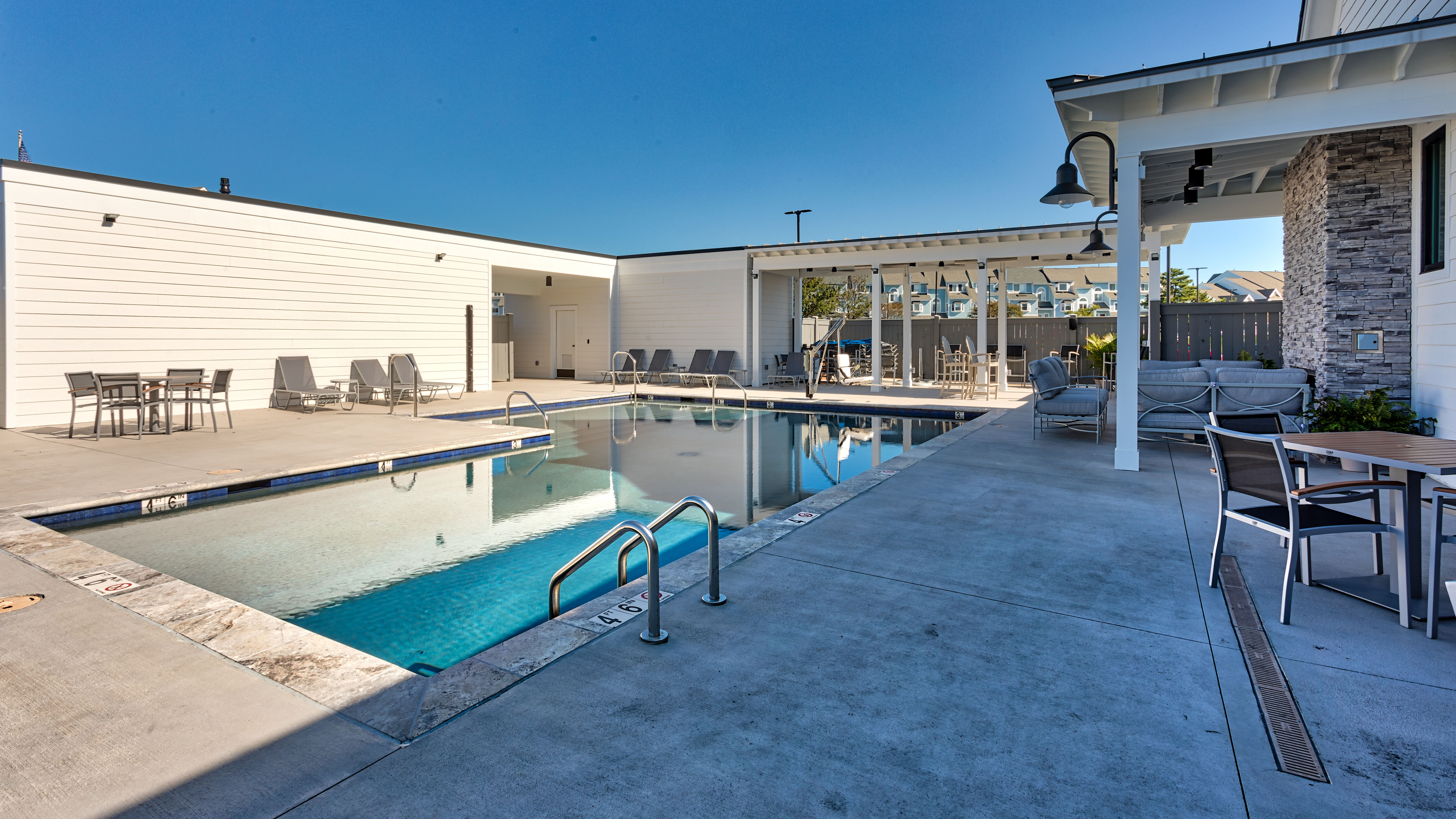 Bay Point Marina has newly renovated floating docks. There is a new Surfrider restaurant on site, which serves great food. There is a very nice pool and deck area. Bay Point is located in a very nice neighborhood, East Beach. Shopping is a little far, but it is in walking distance. Leaving the marina on your boat lets you out directly into the Chesapeake Bay near the Chesapeake Bay Bridge Tunnel. It's very convenient.
